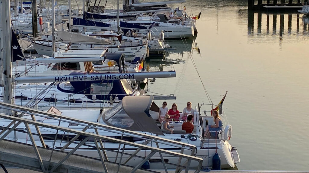 With a full stomach and the wind in our sails, we steered for Nieuwpoort. Our boat glided gently over the waves, basking in the warm glow of the setting sun. We spent the rest of the evening on deck, filling the harbour with laughter, chatter and matching music. All that was missing was pirate songs, the cry of a parrot and the clacking of a wooden leg. Fortunately, Rod Stewart was there to keep us company.